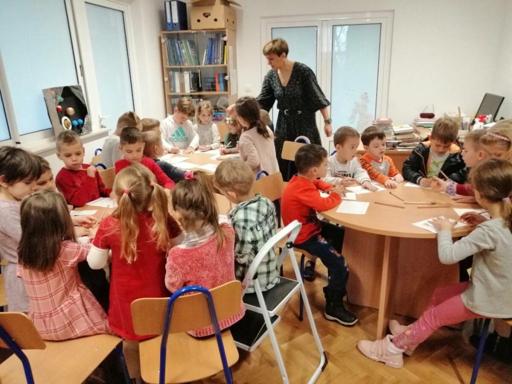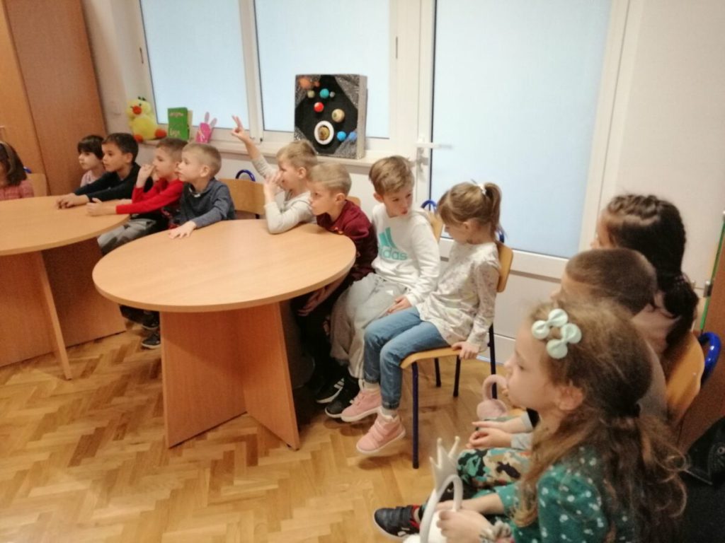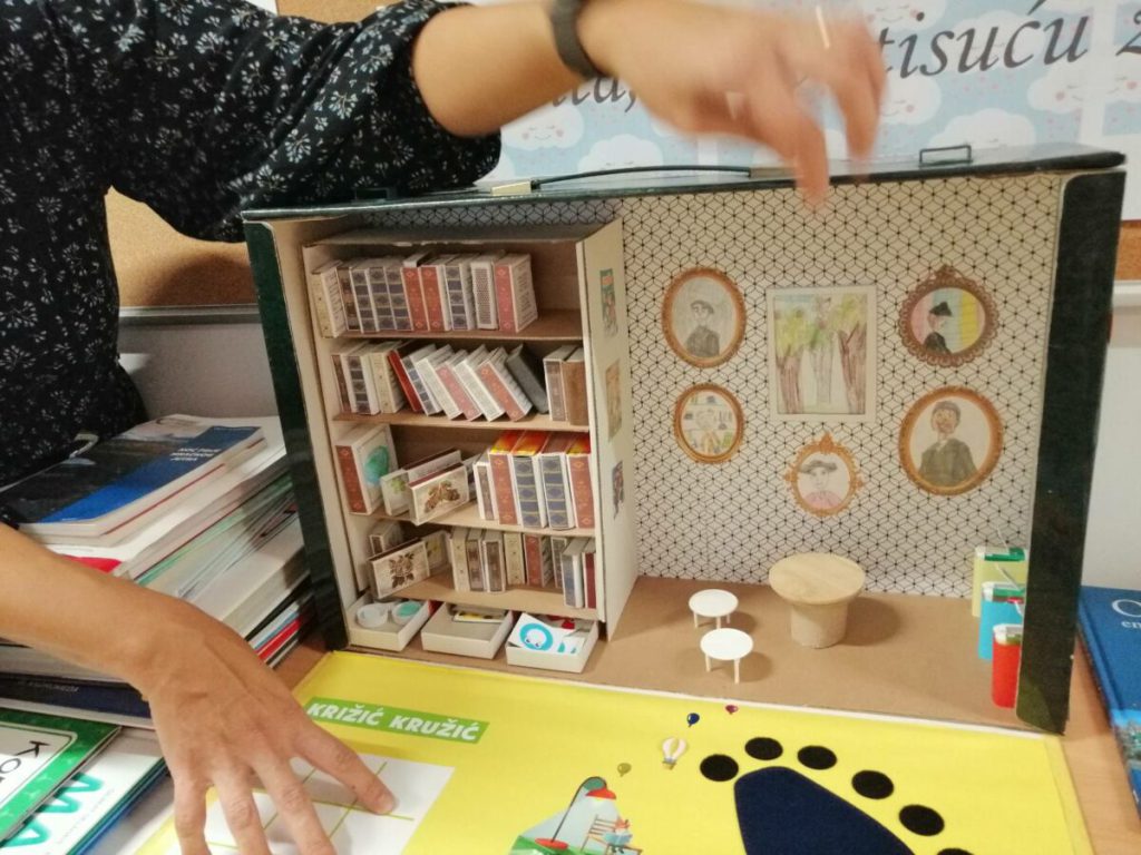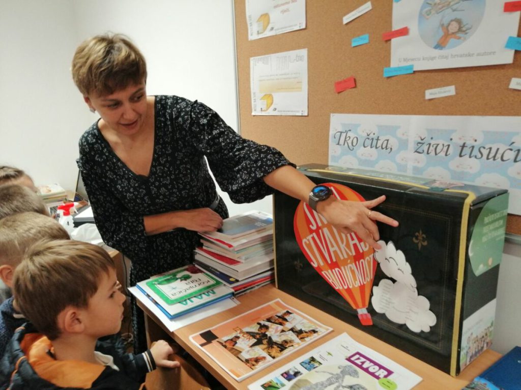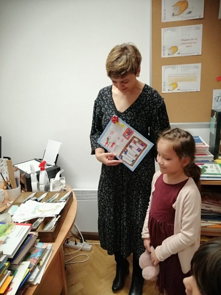 Balončići su knjižničarki nacrtali crtež za uspomenu i pogledali što se nalazi u putujućem kovčegu priča.