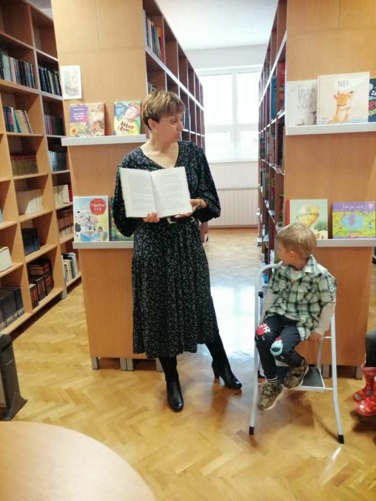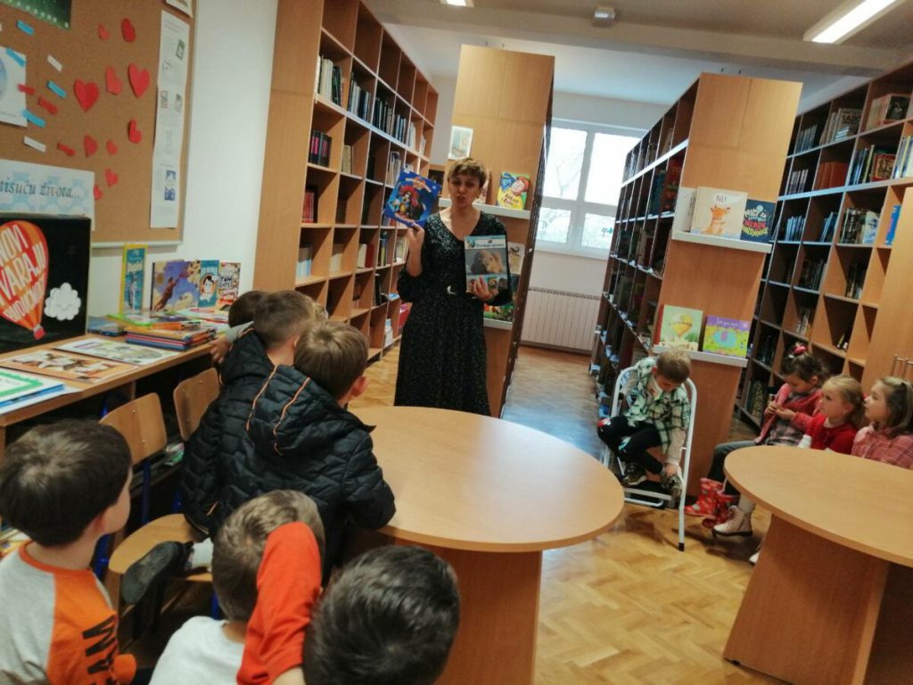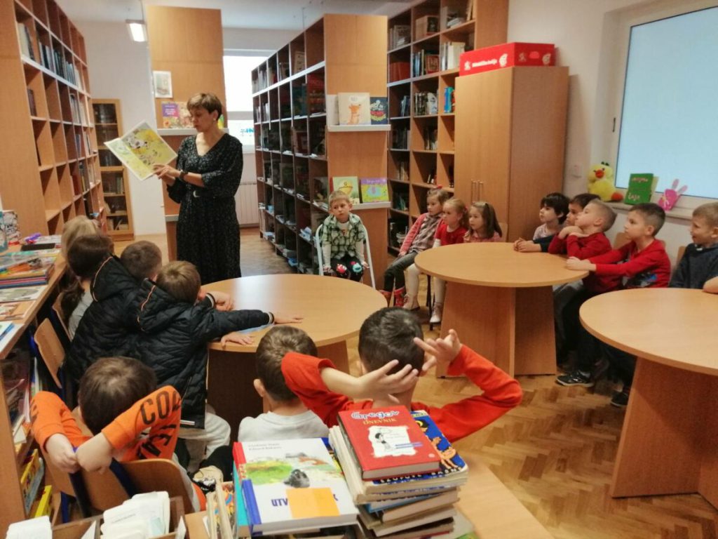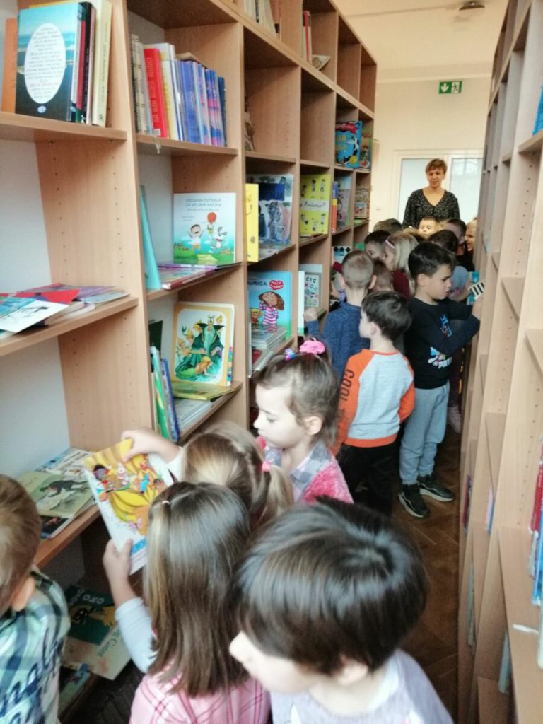 Posjet knjižnici OŠ Ladimirevci i susret s knjižničarkom Ivanom Kunom protekao je u ugodnom ozračju. Gospođa Ivana pročitala je priču “Uljuđeni vuk”, a potom smo razgledali prostor knjižnice i prelistali slikovnice s polica.