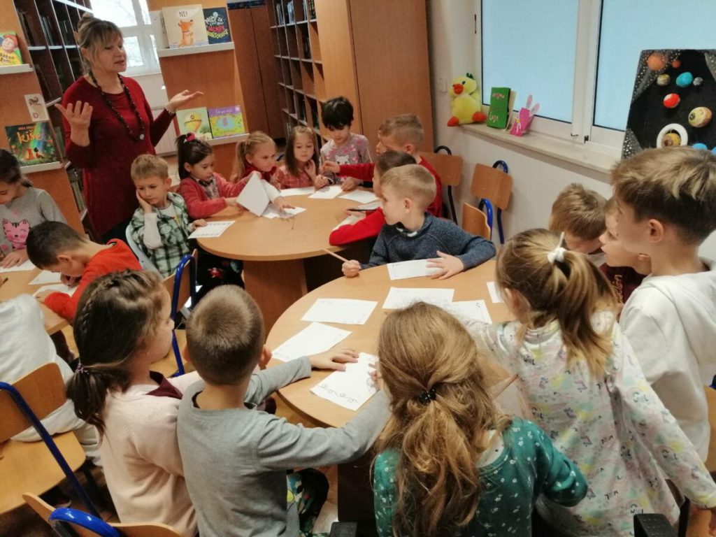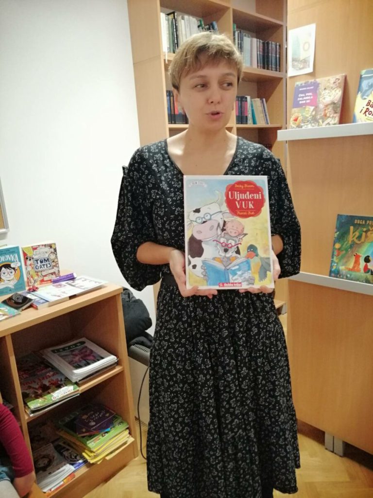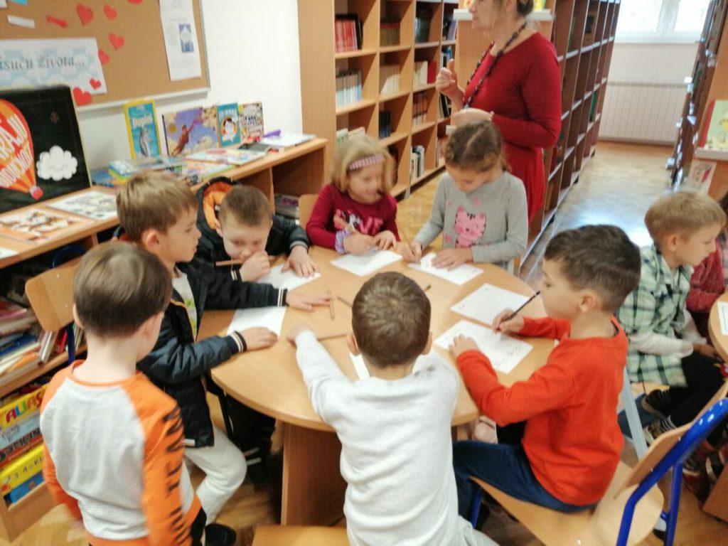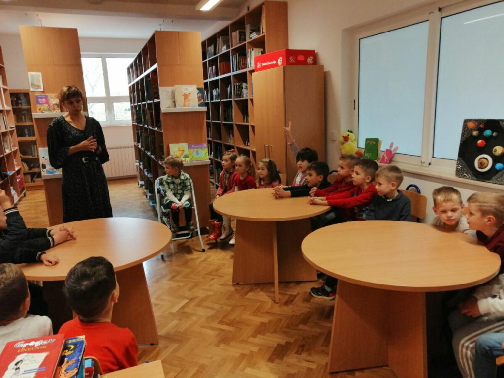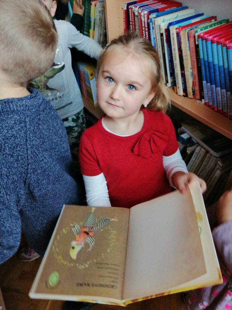Posjet knjižnici OŠ Ladimirevci i susret s knjižničarkom Ivanom Kunom protekao je u ugodnom ozračju. Gospođa Ivana pročitala je priču “Uljuđeni vuk”, a potom smo razgledali prostor knjižnice i prelistali slikovnice s polica.
